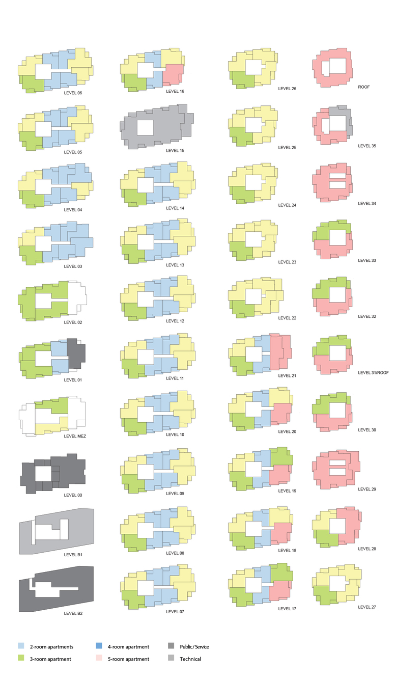 At a height of 125 meters, and 110 meters, respectively, the two towers are the highest residential buildings in Stockholm’s city center. Located in Hagastaden, a new district in the north of Stockholm developed around the Karolisnka Institute (which awards the Nobel Prize in Medicine), they stand as a gate to the city. However, the manipulation of the initial building envelopes radically transforms their initial implied architecture of monumentality. It gives way to an articulation of domesticity. A once formalist structure comes to house apartments that are surprisingly informal...one could even say humanist.
