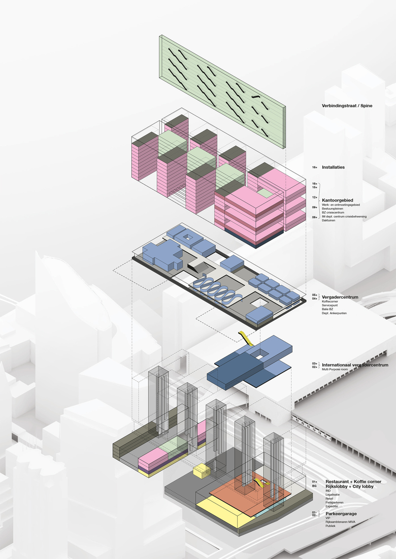 Upon its completion in 1992, Rijnstraat 8, the former Ministry of Housing, Spatial Planning and the Environment (VROM) building represented both an innovative office typology – its atriums served as conservatories: the outside brought inside – and a leading example of sustainability. Today the building, designed by in the 1980s, no longer offers the flexibility and openness required of a contemporary office space. In collaboration with the original architect, Jan Hoogstad, and in the context of a Public Private Partnership under the name of PoortCentraal (consisting of BAM, ISS and OMA), OMA has developed an integrated concept for the building based on a renewal of its existing architectural qualities.