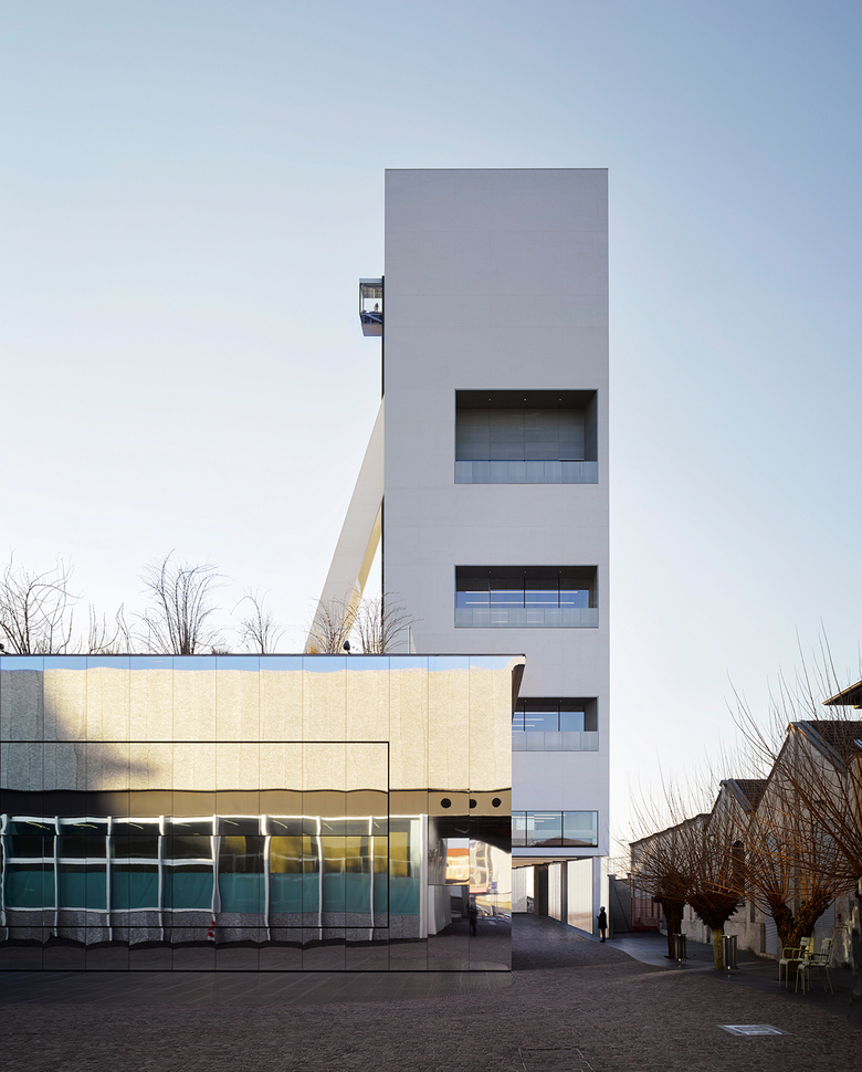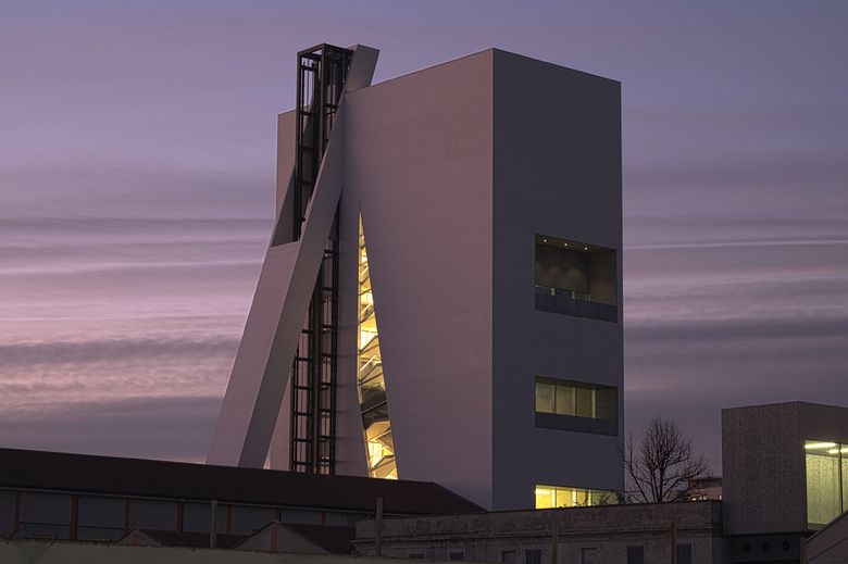 At the base of the tower, a second entrance offers direct access to the tower, its restaurant and roof terrace, the experimental performance space of the Deposito, and to the other parts of the Fondazione.