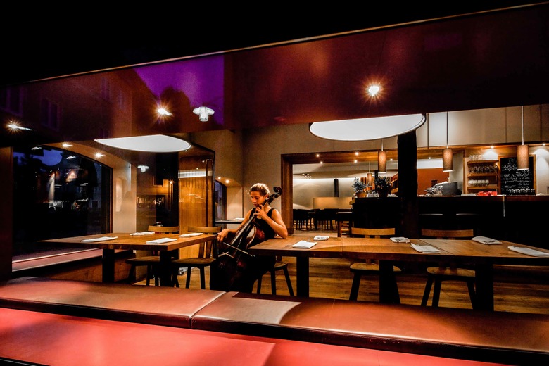 Zwei historische Stadthäuser in direkter Nachbarschaft der alten Kirche werden entkernt, saniert und für ein italienisches Restaurant miteinander verbunden. Der Gast wählt zwischen vielfältigen Raumsituationen: Verglaster Panoramablick oder lauschige Weinstube, Kaminlounge oder Galerie im altem Dachgebälk. Raumstimmung in geölter Eiche und bordeauxrotem Leder. Im Freien reihen sich lange Massivholztische und eine Skulptur von Josef Lang. Die gelungene Revitalisierung des Burgauer Kirchplatzes.