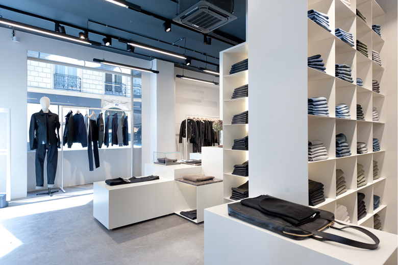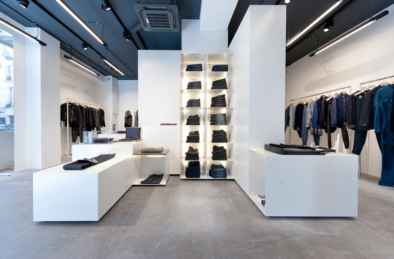 Für das internationale Modelabel Closed wurde der erste Pariser Flagship-Store fertiggestellt, der einen einzigartigen künstlerischen Ansatz zeigt und die Lage in der Modemetropole Paris widerspiegelt. Dieses Projekt markiert die erste Entwicklungsstufe eines neuen Storekonzepts für Closed. Das 59 m² große Geschäft im beliebten Pariser Einkaufsviertel Le Marais vereint Elemente des vorherigen Konzepts und konzentriert sich auf eine Vielzahl von Würfeln und Rechtecken, die von innen beleuchtet werden. Die geometrischen Formen bestechen durch ihren klaren und dennoch skulpturalen Charakter und bieten eine Vielzahl unterschiedlicher Präsentationsflächen für die Kollektion sowie für die Umkleidekabinen des Geschäfts. In Bezug auf den Betonboden bilden die luxuriösen Materialien Edelstahl, Marmor und farbiges Glas sowie das unregelmäßige Muster der Neonröhren an der Decke einen aufregenden Kontrast, der den eleganten und dennoch innovativen und authentischen Charakter des internationalen Modelabels Closed unterstreicht. Eine farbige Glasschiebetür gewährt Einblicke in die Aufbewahrung und spiegelt den offenen und innovativen Charakter der Marke wider.