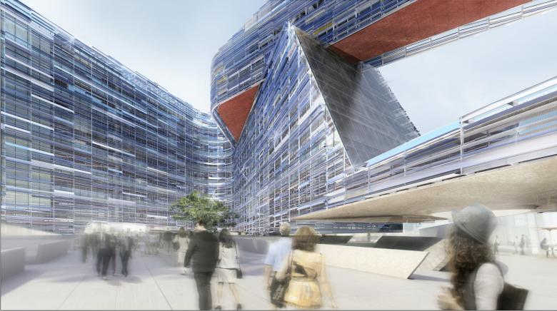 Il progetto comprende inoltre la progettazione del paesaggio e degli spazi pubblici per le aree esterne ed attigue ad entrambi i centri direzionali.