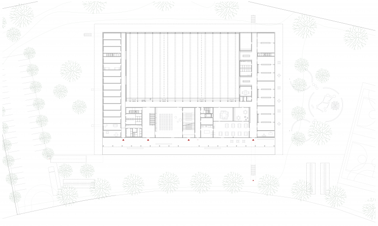 - Neubau mit 18 Klassenzimmern, Betreuung, Dreifachturnhalle für Schul- und Vereinssport, Unterkunft für Sportler, Pausen- und Sportplätze