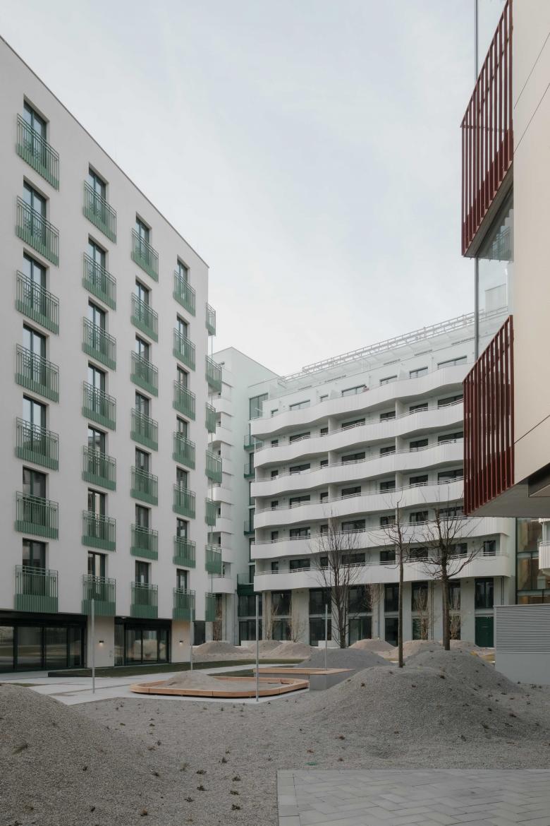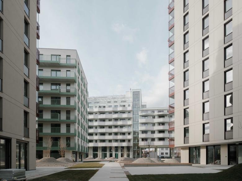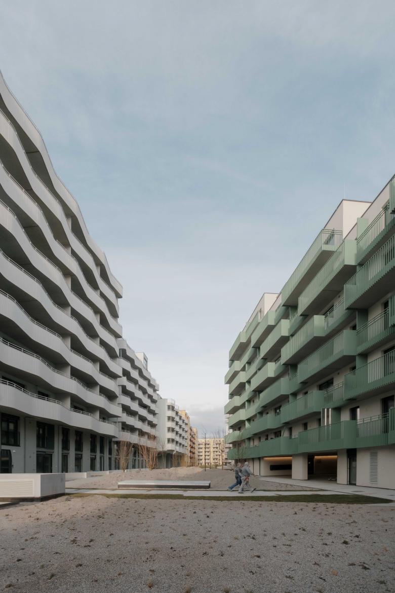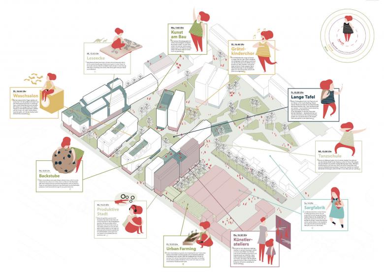 Miteinander statt gegeneinander: Die Häuserblöcke mit Loggien, gemeinschaftlichen Dachterrassen und Erdgeschoßzonen gliedern kommunikativ das neue Quartier im Süden Wiens. Die Ateliers, Proberäume oder Gemeinschaftsküchen in den Erdgeschoßzonen stehen offen für alle. Der Kulturteppich des Quartiers verwebt den angrenzenden Bildungscampus Atzgersdorf, die Sargfabrik und das neue Wohnquartier zu einem gemeinsamen Ganzen. Eine produktive und lebenswerte 'Stadt in der Stadt': Ein vielfältiges Bildungs-, Kultur- und Freizeitangebot – besonders für Kinder und Jugendliche – diverse Wohntypologien und Ateliers für Kreative und das Kleingewerbe.