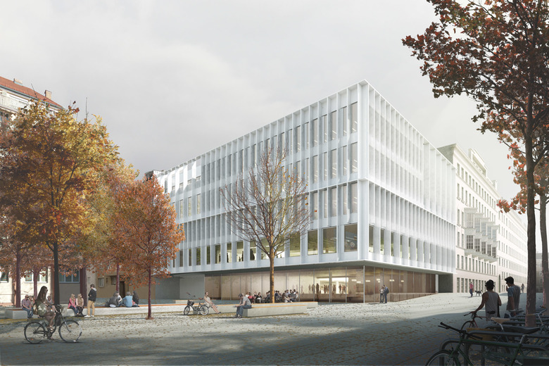 In der klar rhythmisierten Fassade sind die Funktionen der dahinterliegenden Geschosse ablesbar. Im Inneren findet man weitestgehend stützenfreie Räume mit einer hohen Flexibilität, perfekt für die heterogene und sich ständig ändernde Raumnutzung einer Universität. Der Komplex ist durchgehend auf einer klaren, orthogonalen Struktur, basierend auf dem 1,20 Meter - Modulraster aufgebaut. Die Decken überspannen in Querrichtung mittels Unterzügen die Traktbreite, um möglichst große zusammenhängende – und damit flexibel unterteilbare – Nutzungseinheiten zu ermöglichen.