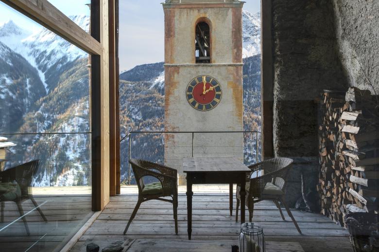 Der Turm und sein Standort vor der Aussicht in das Tal und die Berglandschaft waren entscheidend für den Entwurf des Umbauprojektes.
