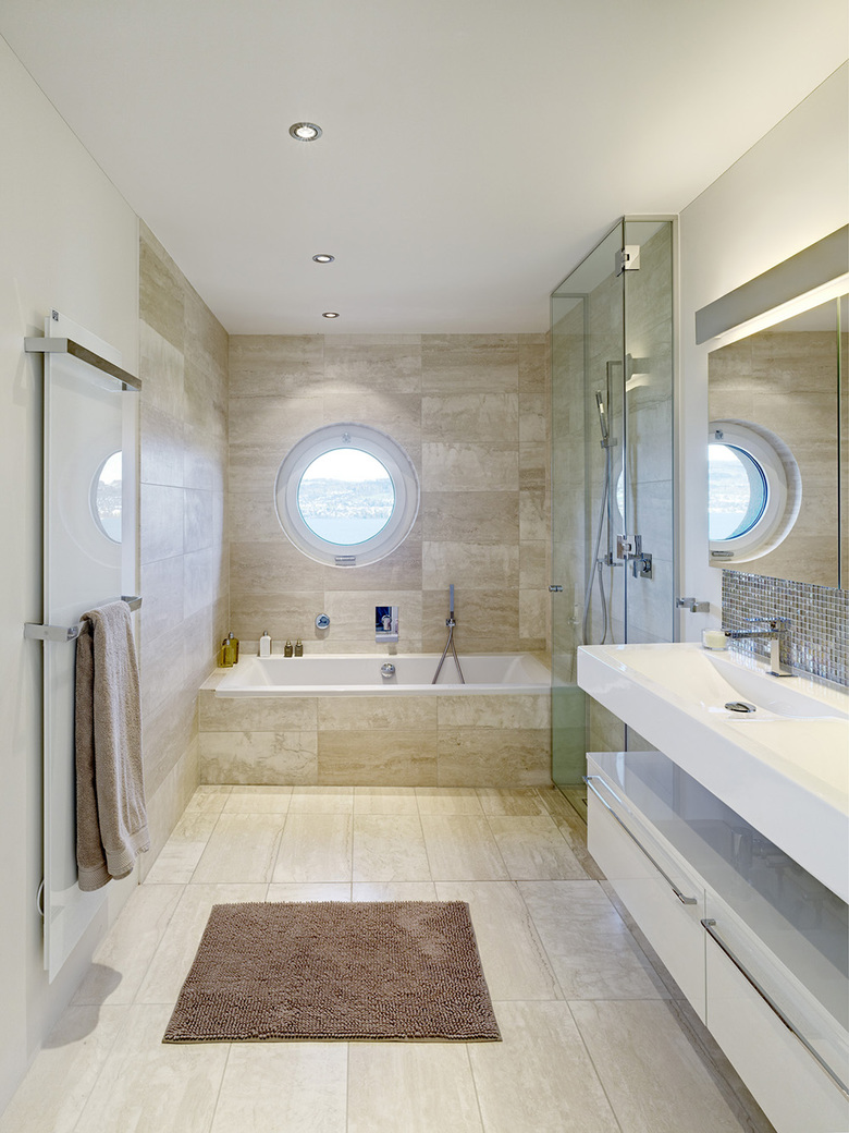 Die Herausforderung der Bauten am linken Zürichseeufer liegt in der optimalen Ausrichtung zur Sonne und gleichzeitiger optimaler Aussicht zum See - zwei entgegengesetzte Richtungen. Dies ist durch die verschobenen Baukörper gelungen.