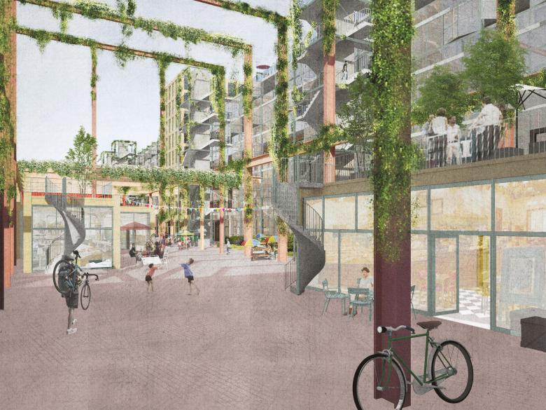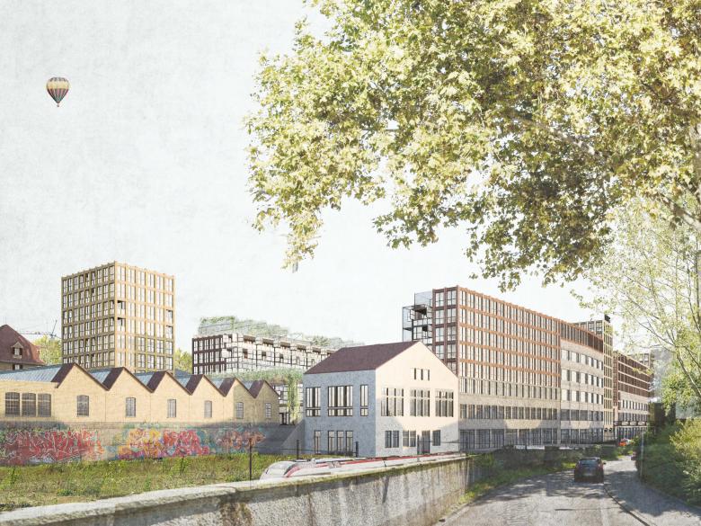 Auf dem Gelände der ehemaligen Maschinenfabrik Wifag in Bern wird eine Testplanung für ein zukünftiges Wohnquartier durchgeführt. Im Sinne einer gelebten Nachhaltigkeit wird möglichst viel der vorhandenen Bausubstanz weiterverwendet: Die ehemaligen Produktionshallen in der Mitte des Areals werden abgedeckt, die verbleibende Stahlkonstruktion dient als Rankgerüst für Schling- und Kletterpflanzen, die Randbebauung wird konsequent aufgestockt und durch Neubauten ergänzt. Sieben Hochpunkte markieren die grosszügigen Zugänge zum Areal sowie die Anknüpfpunkte ans Quartier.