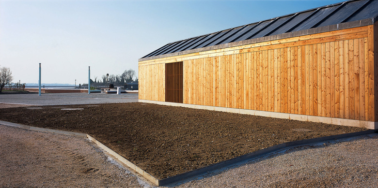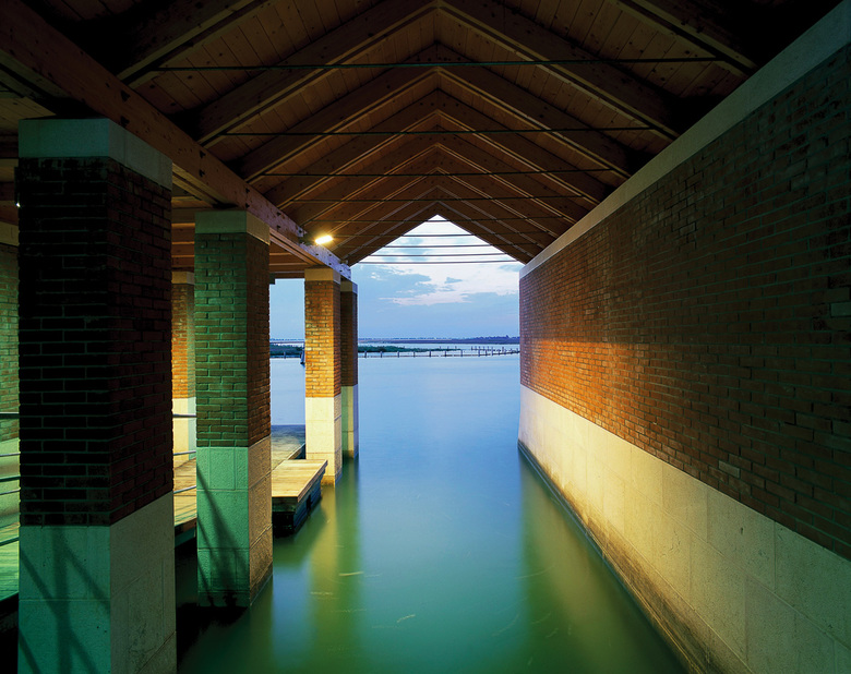 The other parts of the building are again made of wood as well as the brise-solei which faces the brick surface of the square where the boat terminal arrives.