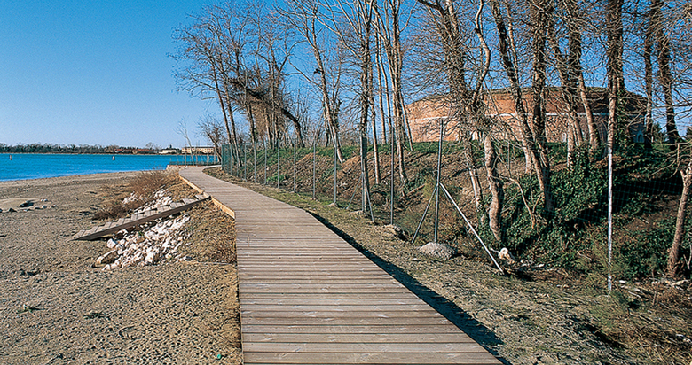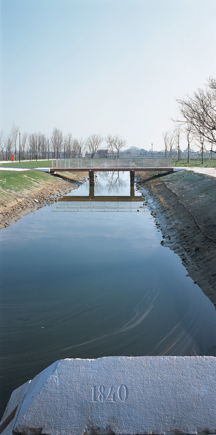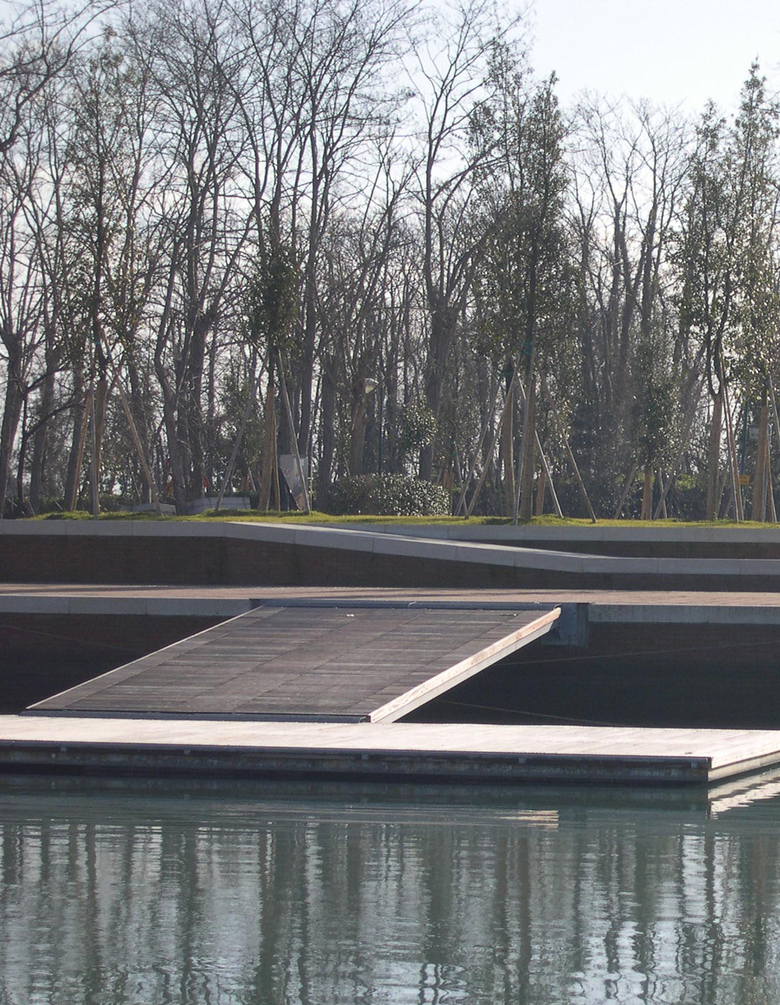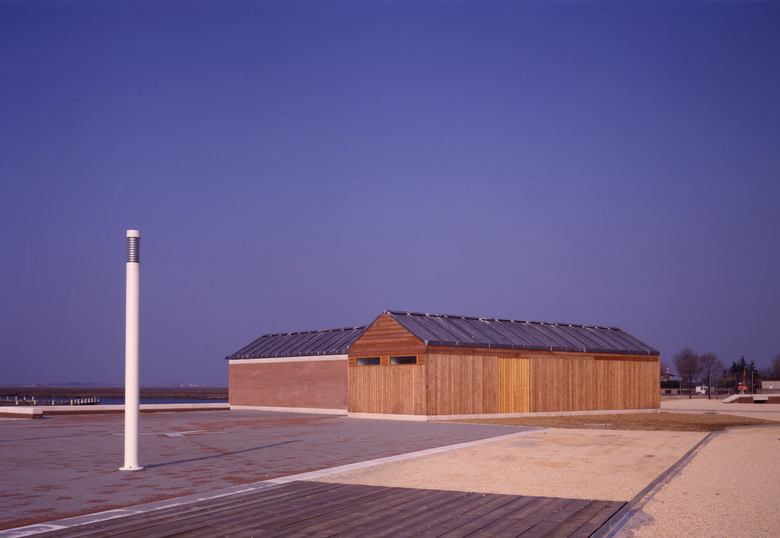 uspended between land and sea, the landscape of the project is the lagoon of Venice. It is the landscape of a physical and mental journey through a territory that has been saved from the real estate speculation that has recently ravaged Italy. The project tries to tie together all the landscape elements: existing military constructions, traces of the farmland, the beach system and the infrastructure system which links the island to Venice. The project aims to reconstruct the complex system defined by the Massimiliano Tower, its embankments, the docks, the public landing, the beach and the farmlands insinuated between these elements, with these primary objectives: