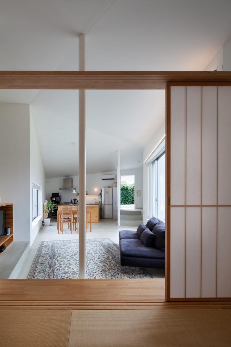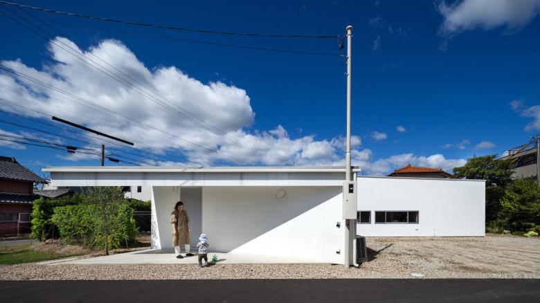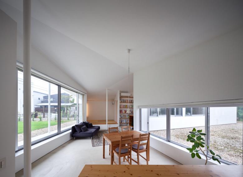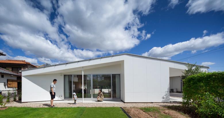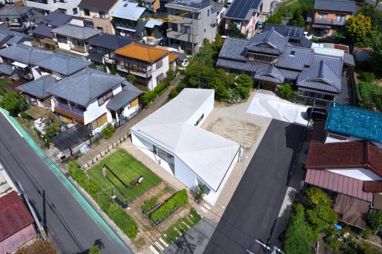 道路からの距離、実家へのアプローチ、実家と繋がる庭と広場、何一つ絶対的な数字はなく、ただ過不足のない適当な距離からこの平屋は生まれました。