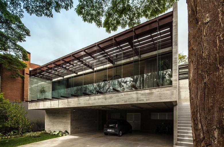 Located in an area of neighborhoods called Jardins, with single-family houses and green areas listed as heritage, this house has 550m2 of built area divided into two levels, the ground and upper floors. The original land had a four-meter slope height in relation to the level of the street.