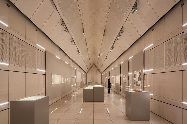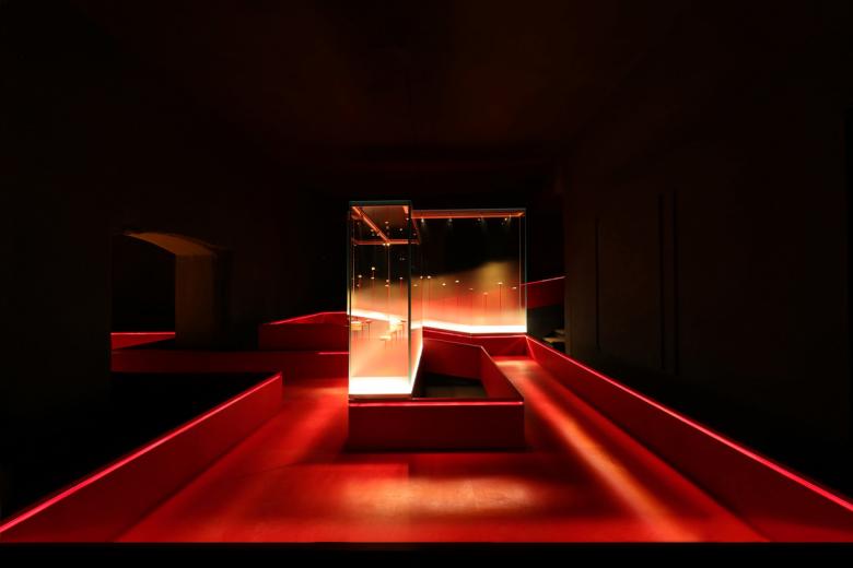 The exceptional exhibition concept of Sichau & Walter Architects BDA frees itself from the building envelope of Erbach Palace and presents the collection in blacked-out rooms painted in anthracite.