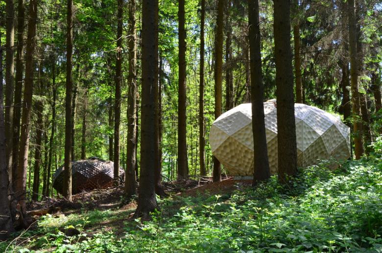 Three "forest rooms" — pavilions inspired by nature — were set up in the Saar forest as walk-in art and exhibition pavilions.