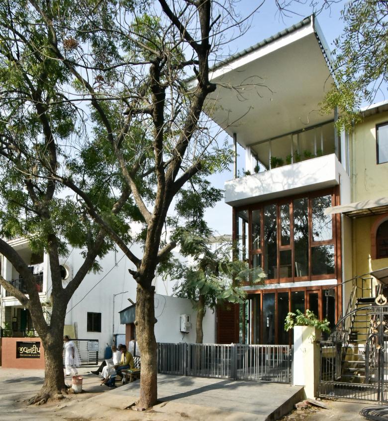 The party wall office adapts an aging, dingy row house to create a narrow new work space full of light.