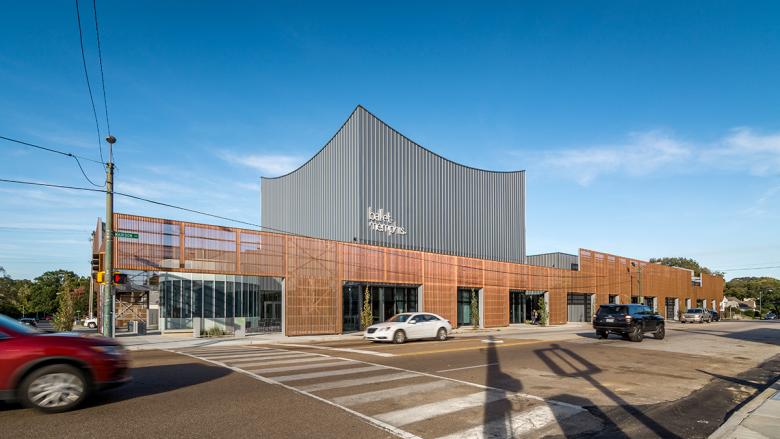 Ballet Memphis had outgrown its current space and wished to move from a suburban location to a performing-arts district undergoing revitalization in Memphis. With large windows and public courtyards, the building contributes to the already thriving urban district.