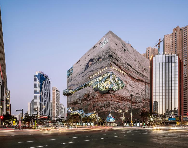 The Galleria is Korea’s first and largest upscale department store franchise. The store in Gwanggyo is Galleria's sixth branch, its stone-like appearance making it a natural point of gravity for public life in the city.