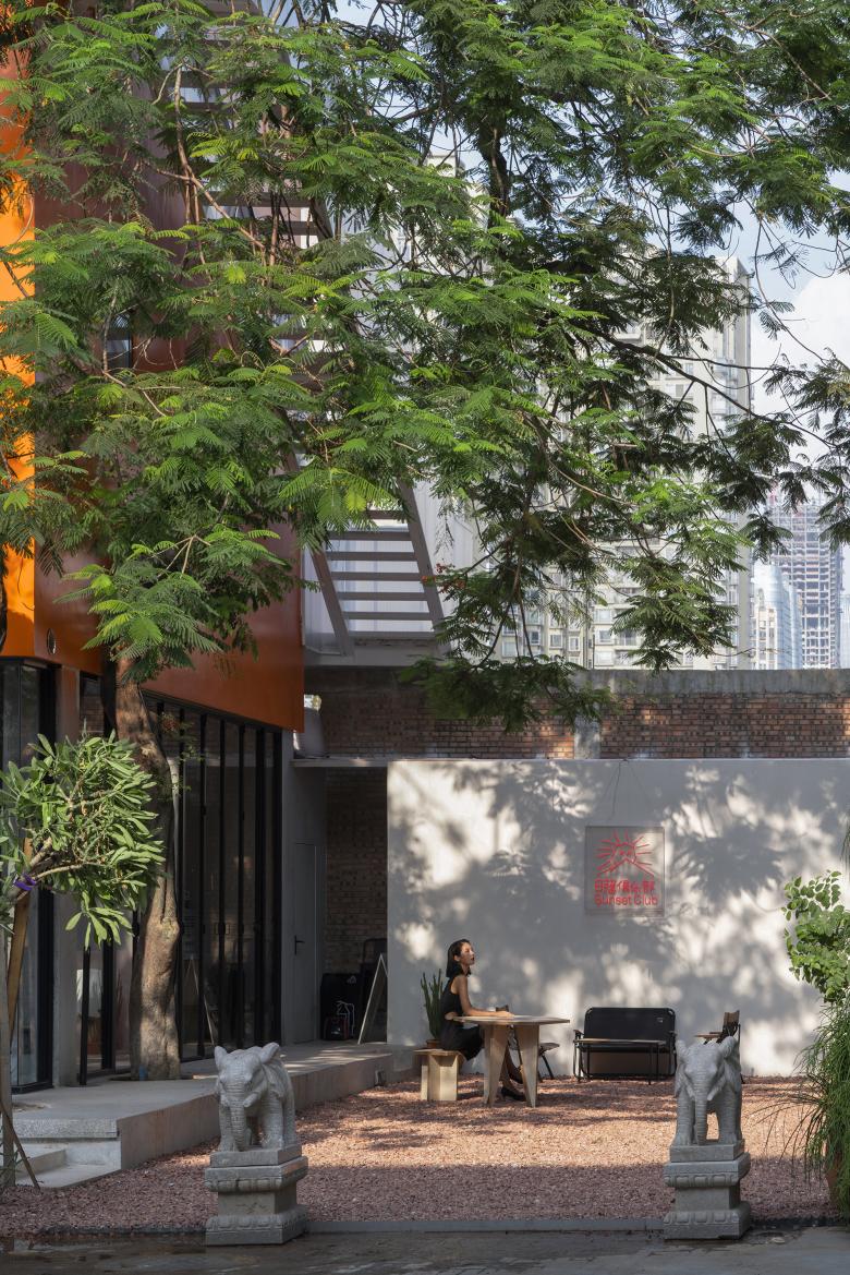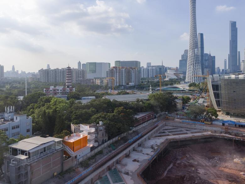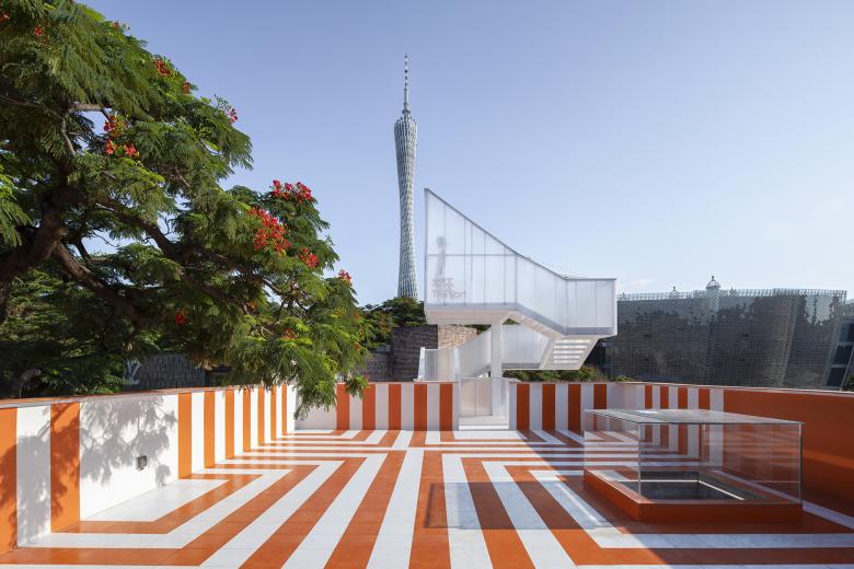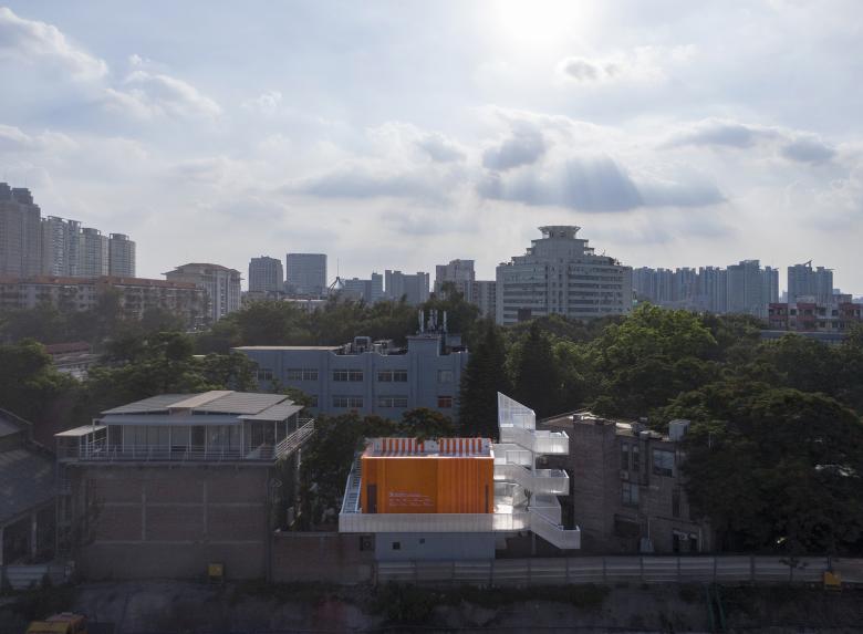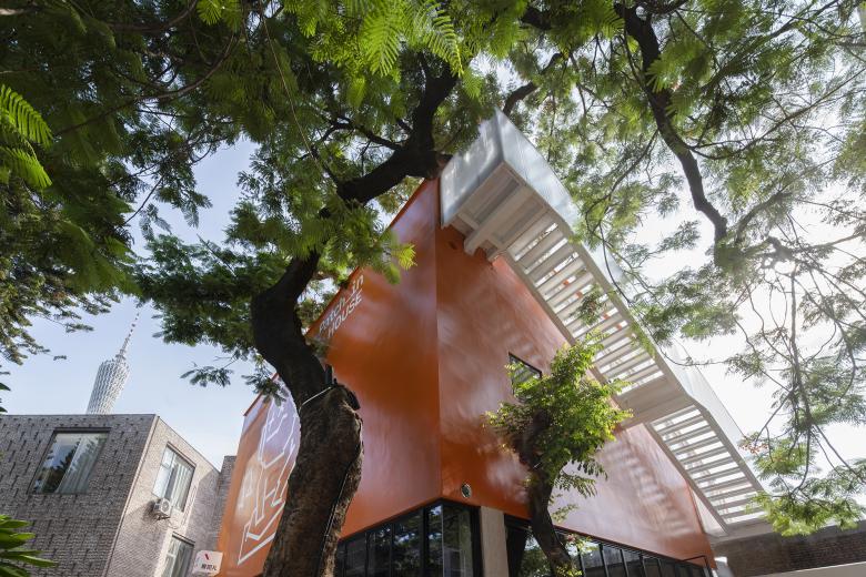 On one side of the Uhub HOUSE is the T.I.T Creative Park, which was transformed from the former site of the Guangzhou Textile Machinery Factory, and on the other side is the Guangzhou Science and Technology Museum, a large urban public building to be built as an art museum. It is located right at the border. You can think of Uhub HOUSE as an orange patch in the iteration of urban renewal: between the past and the future, across online and offline.