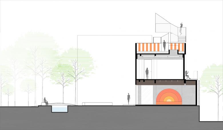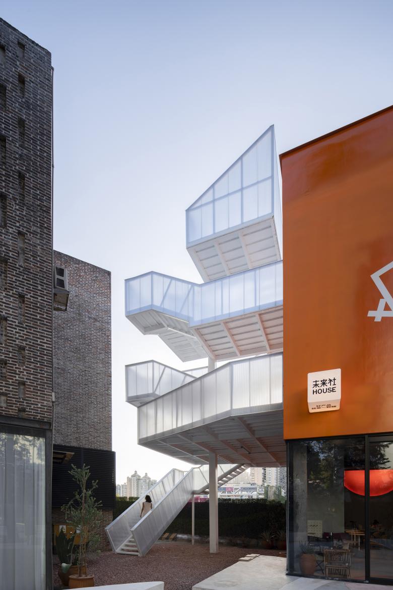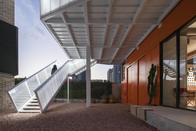 The roof is a garden and a secret party playground where let people see the trajectory of the moon at night, this is the moonlight camp. Wutopia Lab designed two paths to reach the roof, offering multiple circulations to fit flexible activities on the rooftop.