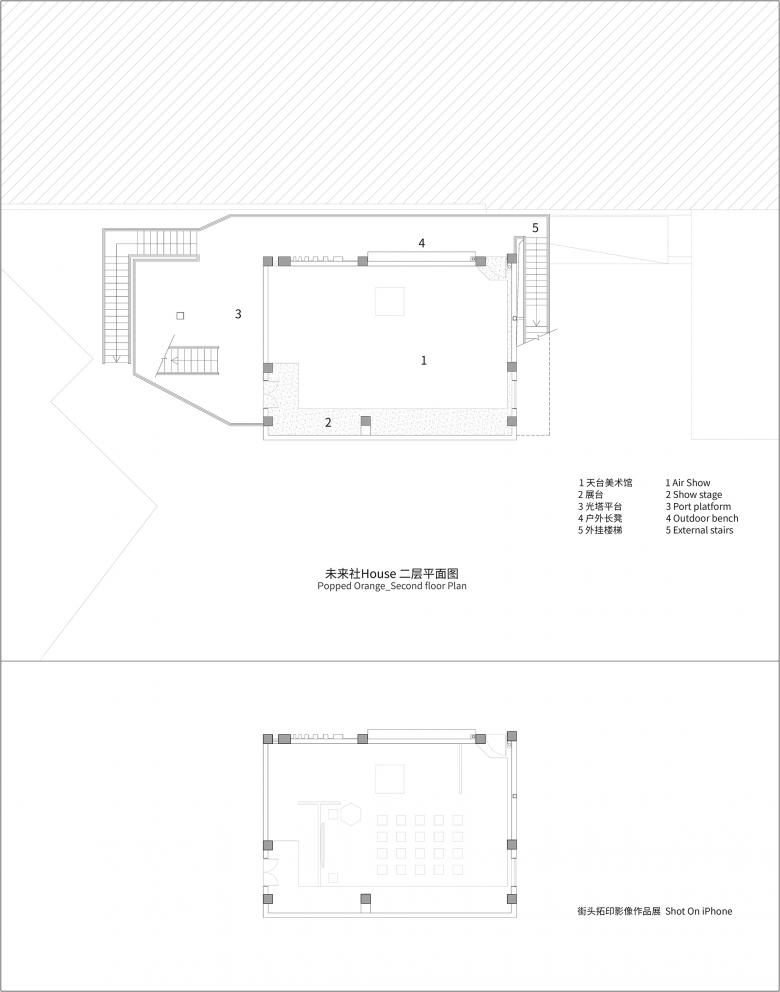 The daily operation on the second floor is the Air Show rooftop gallery (exhibition space), which can be transformed into a live house, sharing space, performance space and party space by special operations.