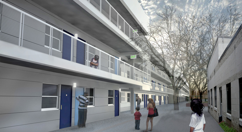 The work includes replacing the exterior facades and upgrading the interiors of all 196 dwelling units of the residential buildings including the floating hospital (2 units), superintendent’s office, staff lounge, and board of education office. Included in the scope are new kitchens and bathrooms for all units and new ADA accessible (10 units) and adaptable (26 units).