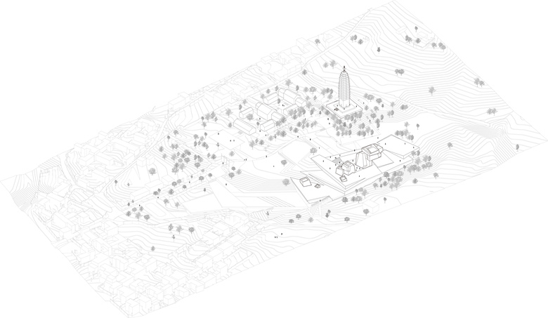 The strong natural landscape and the meaning of the former religious symbols influenced the main museum spaces in the ground. Roof lights and sunken courtyard structure and ‘light chimneys’ on platforms creates a modern counterpart to the nearby religious structures. Local rammed earth will be used to construct the walls. The municipal administration hopes that this modern complement to the ancient heritage will attract cultural tourism and position the city as a new centre for contemporary cultural production in the region.