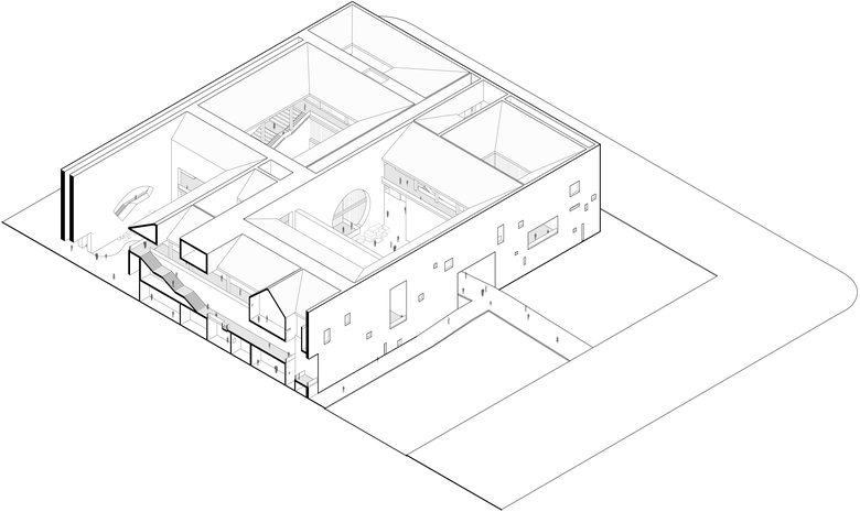 Axonometric section cross main courtyard