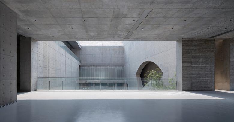Multiple courtyards of different sizes are placed in a relatively enclosed rectangular block. They are connected by a winding, undulating public walkway, which is a public loop protected from the sun and rain. The public loop guides people over the bridge, crossing the moat into the building. The extensive front yard at the main entrance forms a public square that represents the tang wu (central room) of typical Shou County residences, while the backyard resembles the back garden of local folk houses. Each program of the building has two or three inner courtyards. From the front yard, visitors can wander all the inner courtyards without interrupting the continuity of the rooms. Walking along the protected public loop, visitors can find themselves at times on the first floor, second floor or third floor. The space is unpredictable, and light and shadow continually shift to surprise visitors, allowing them to feel the artistic spirit of traditional Chinese architecture expressed by the principles of “hide, breath, cultivate and wander.”