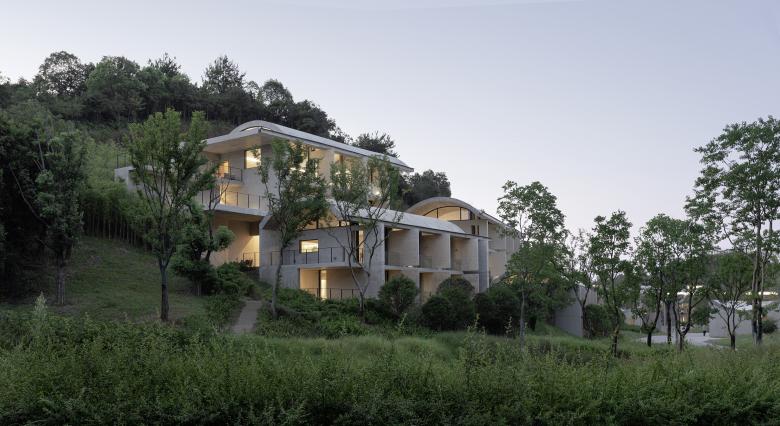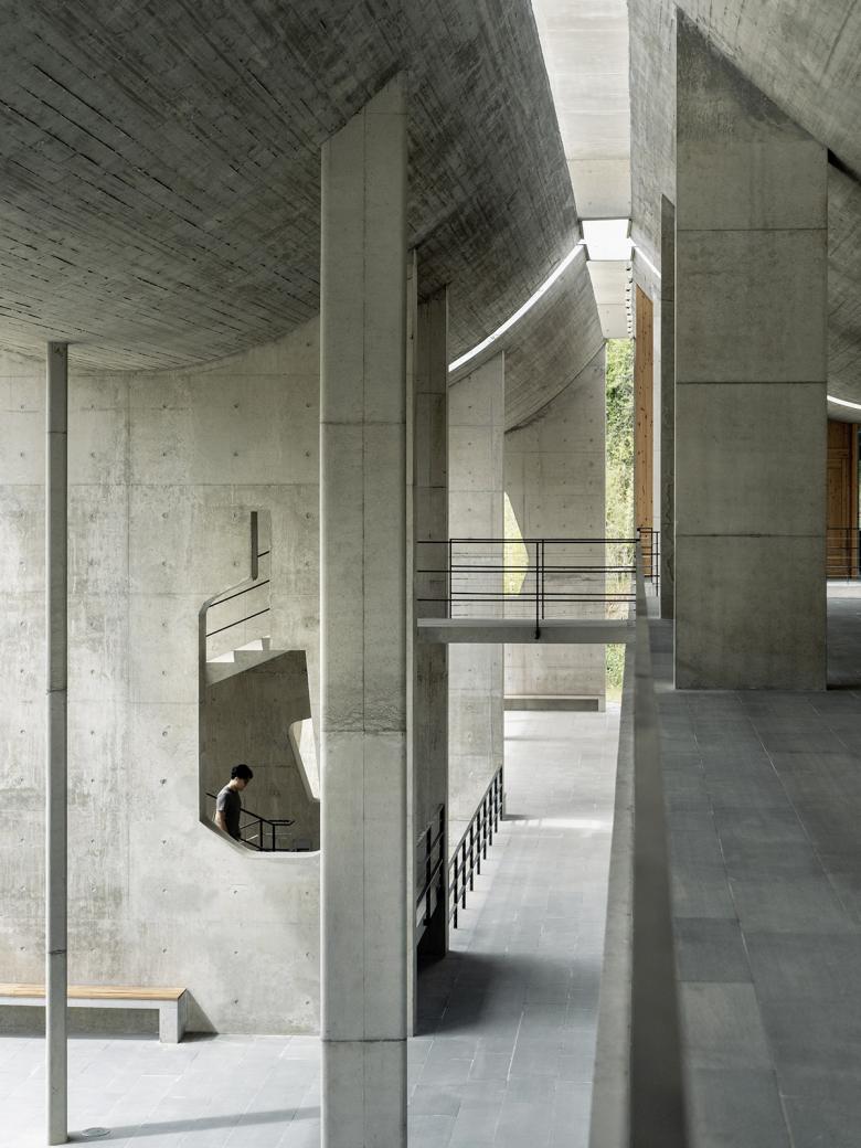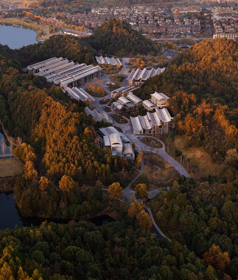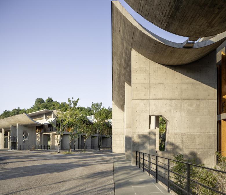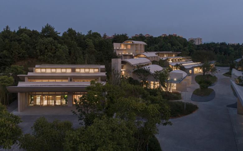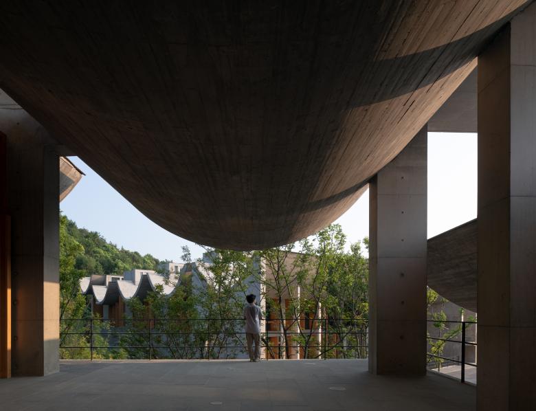 The concept of "incomplete integrity" in Zhu Pei’s design philosophy of "Architecture of Nature" is strongly reflected in this project, and the full integration of architecture and nature is realized from three dimensions. First of all, from the horizontal dimension, the settlement form presents uneven contour edges on the boundary with nature, so that it forms an organic weaving, stitching, and integration with the natural environment, eliminating the boundary between the building and the natural environment. Secondly, in the vertical dimension, the unit structure system also shows the advantages of mountainous architecture to the greatest extent. It can be stacked up and down with the trend of the mountain. In order to respond to the southern climate, a series of gray spaces are created. The meeting rooms of different spatial scales are connected with corridors, walkways, and platforms under the eaves. The wide eaves provide shade and shelter from the rain, creating shadows in the hot summer of Jingdezhen. Such a sponge-like porous building can not only contain sunlight, air, and sound, realize the flow of air, shape shadows, and bring natural light, but more importantly, it can absorb human activities and emotions.