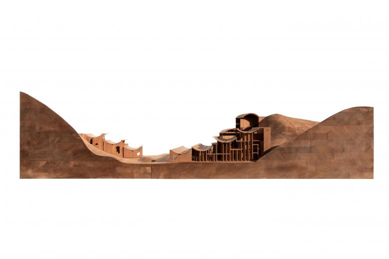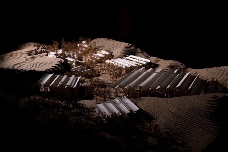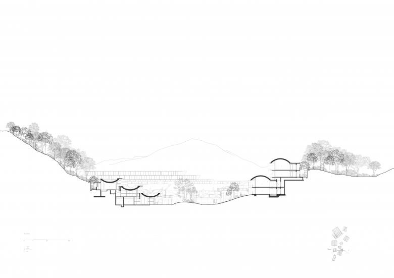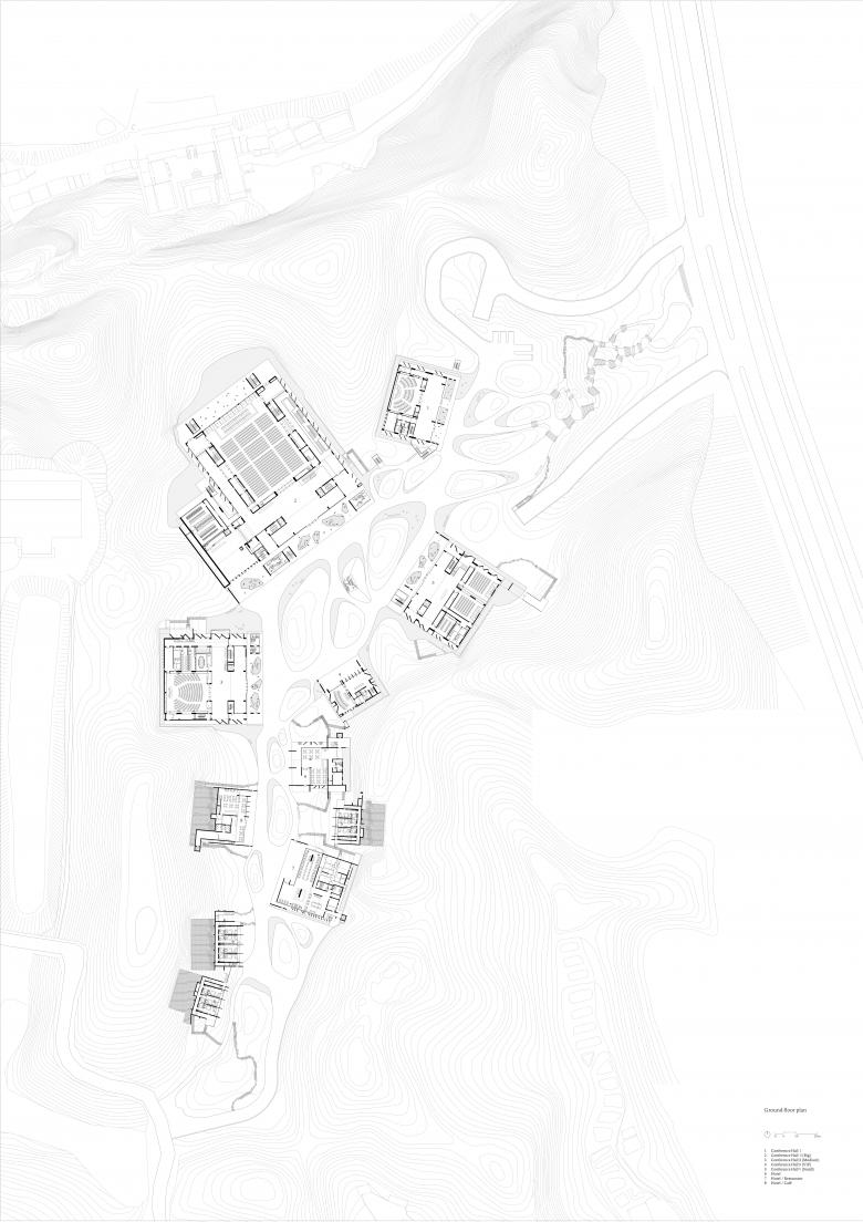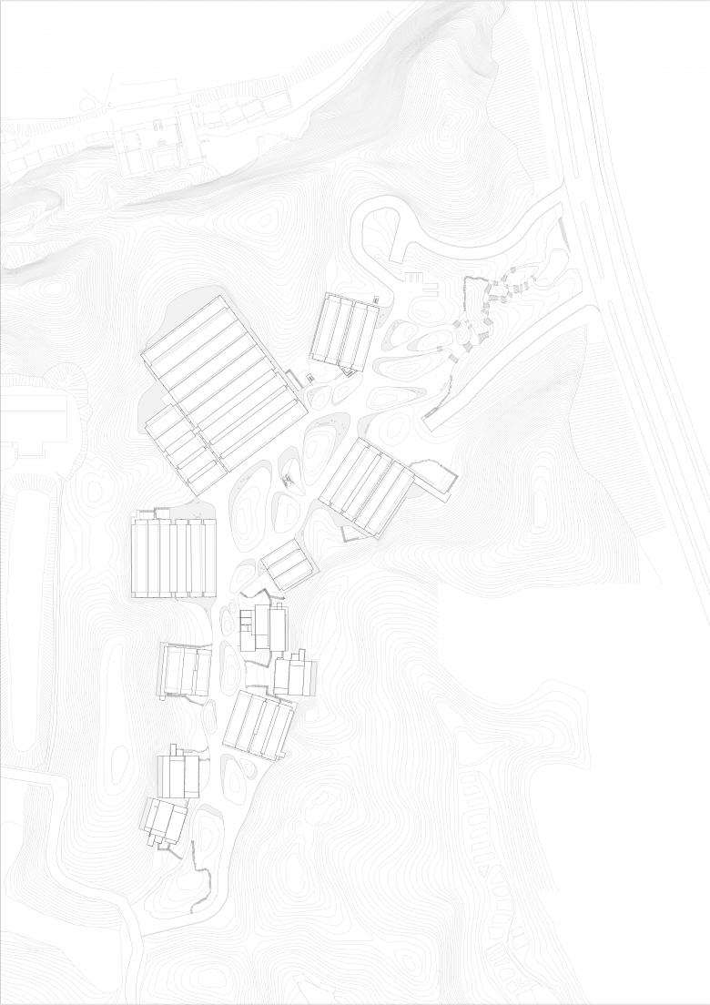 Inspired by the relationship between the local ancient villages and nature, the concept of settlement is adopted to transform the super-scale building of the "conference center" that integrates all functions into "conference and camp" buildings with scattered functions, making it be dissolved in the mountains. This group of buildings hidden in the mountains should inherit the traditional wisdom of the local, be eclectic like a sponge, flexibly and strategically absorb natural air, light, and accommodate human activities to create a naturally open, porous and flowing form of conference center. It can not only have a meeting place that makes the body flow outward, but also create a habitat that brings thinking together.