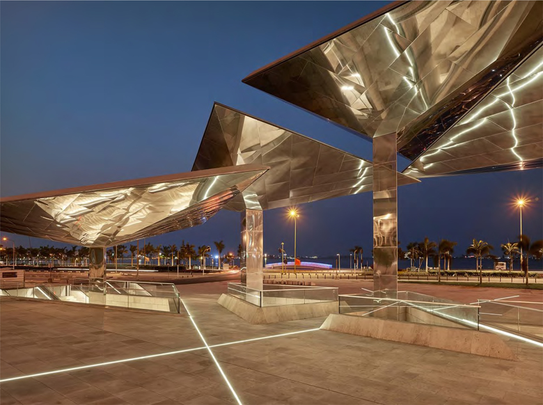 Costa Lopes is headquartered in Luanda with another office in Lisbon. The Angolan capital is a busy metropolis and one of Africa’s boom towns. These two architects also planned the university hospital and the congress tower in Luanda as well as the green shoreline along the picturesque bay with its many palm trees, lawn and rest areas. The Museu da Moeda enjoys a prominent position in close proximity to the National Bank. A location with symbolic significance because the museum exhibits different currencies and means of payment used in this country through the centuries – salt, ivory, shells, gold, but also historical coins and banknotes. The lavishly designed seaside promenade is just a few metres from the museum. The planers included the topology of this location when designing the building: Viewed from the sea you have direct access to the square. On the opposite side you can reach the sloping terrain behind it via steps.