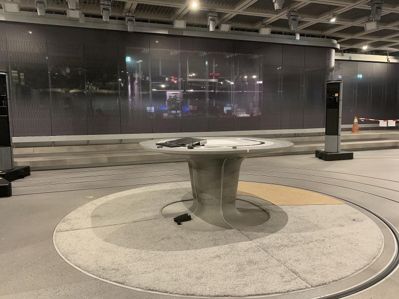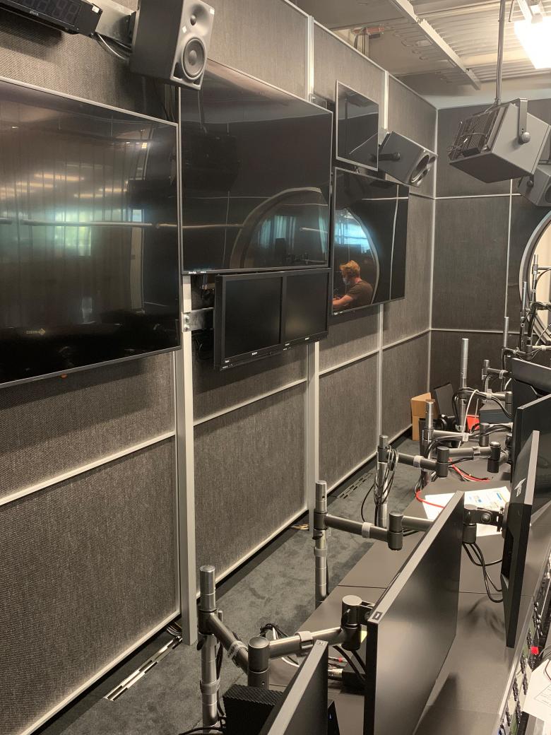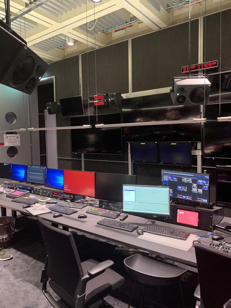 These studios are equipped with the latest technology and fully digitalised. The cameras are mounted on columns which can be moved wirelessly by joystick via a rail system. The recorded data are simultaneously transmitted to the respective editorial offices and processed.