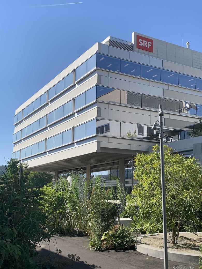 The new broadcasting building of Schweizer Fernsehen in Zurich-Leutschenbach houses editorial and administrative offices, catering, computer centre etc. as well as broadcasting studios for news and sports.