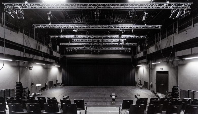 On 4,000 square metres, there are administration, storage and technical rooms on several floors, as well as rehearsal rooms and two black box stage rooms on the two upper floors, one of which is a large hall with four playable sides. This was exactely the special requirement: the walls for the GraviVent shafts must be suitable for active dance and theatre play such as jumping on.