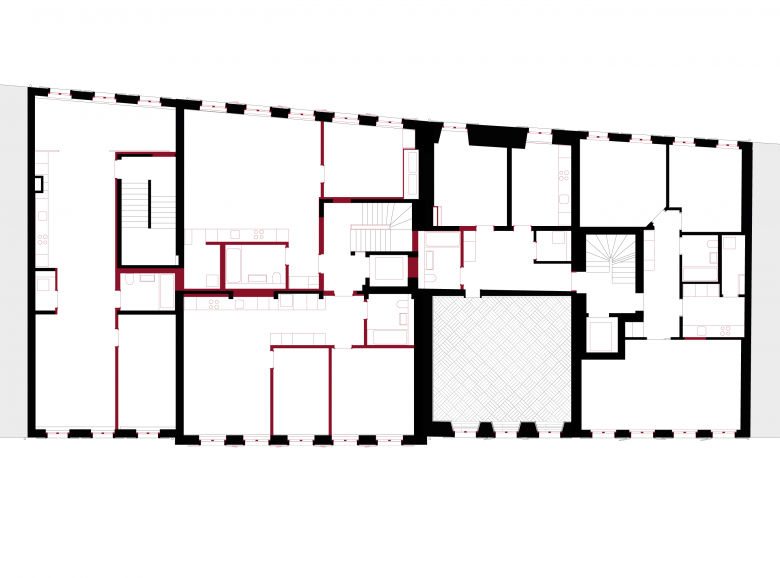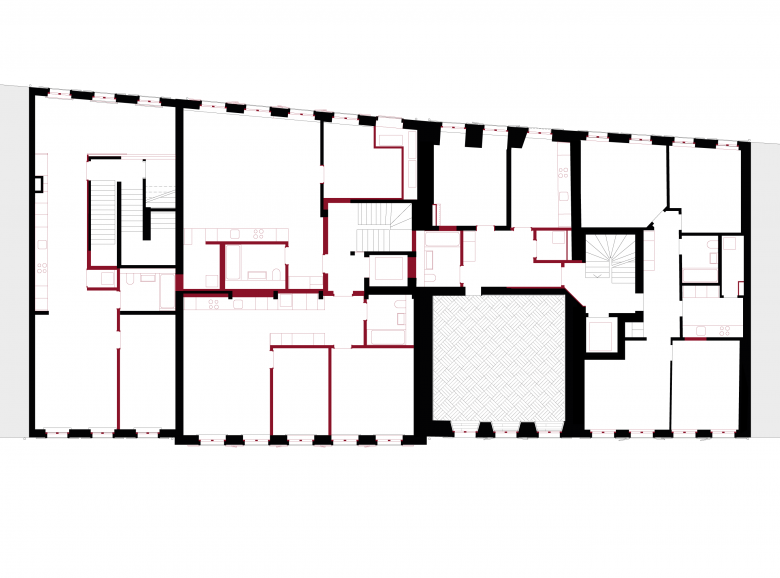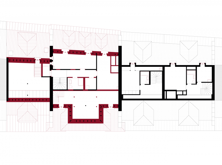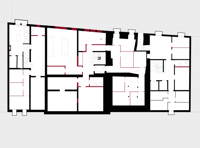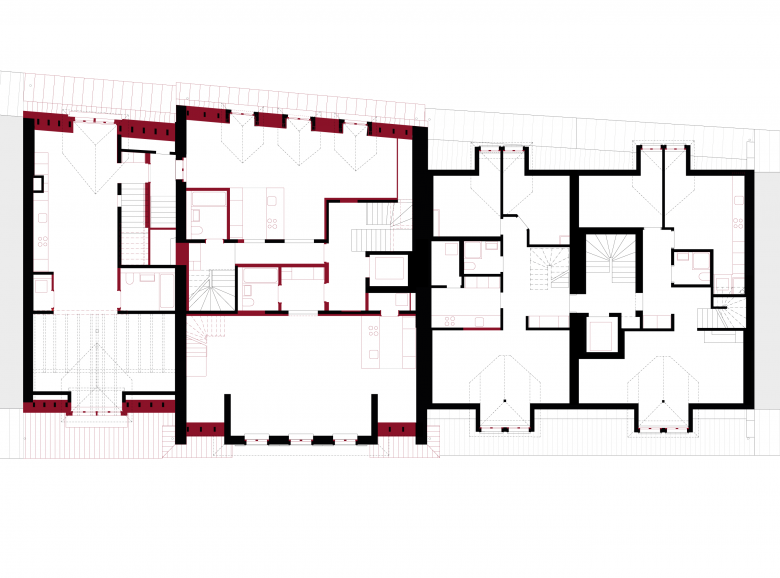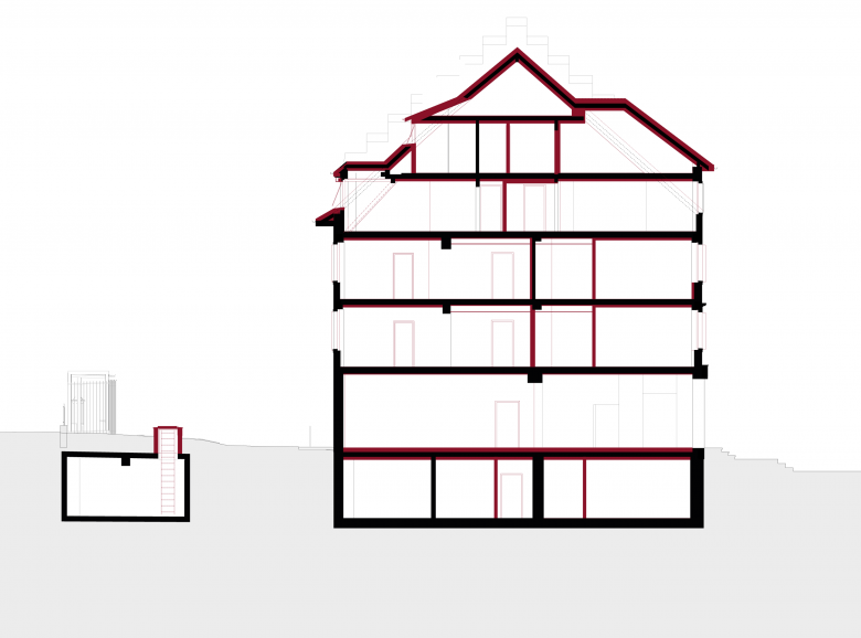 Der Planungsperimeter umfasst die Gebäudehüllensanierung und eine Umnutzung der Häuser 5, 7 und 9 von Büros zu Wohnungen sowie die Erneuerung der Küchen und Bäder in Haus 11. Dabei sollen die vier Gebäude wieder eigenständig strukturiert werden, sofern das nach den massiven Eingriffen überhaupt möglich ist. Bei Haus 9 wird darauf geachtet, dass die Primärstruktur unangetastet bleibt und nur dort, wo nötig, statisch ertüchtigt wird. Die Holzbalkendecken werden von unten her brandschutzertüchtigt und in den beiden grossen übereinanderliegenden, repräsentativen Haupträumen können die bestehenden Massivholz-Kassetten-Parkette und Holz-Wandtäfer erhalten bleiben. Die Farbgebung der Fassaden soll die Eigenständigkeit der vier Einheiten betonen und so erhält jedes Gebäude sein eigenes Farbkonzept, wobei sich die gesamte Zeile als Ensemble präsentiert.