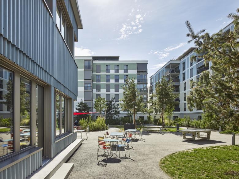 Das Regelwerk des Masterplans definiert starke, traditionelle städtebauliche Bezüge, während die vorgesehenen Nutzungen eher nach Identität und Eigenständigkeit verlangen. Elf halböffentliche Höfe und markante Strassen durchdringen das Limmatfeld, gleichzeitig muss das Bedürfnis der Bewohner nach individuellen Rückzugsräumen berücksichtigt werden. Das Projekt reagiert auf diese Ausgangslage, indem die fünf Baukörper der Genossenschaft BEP um einen maximal grossen gemeinsamen Wohnhof aufgespannt werden. Ohne harten Bruch wird dem öffentlichen «Aussen» ein halböffentliches «Innen» gegenübergestellt.