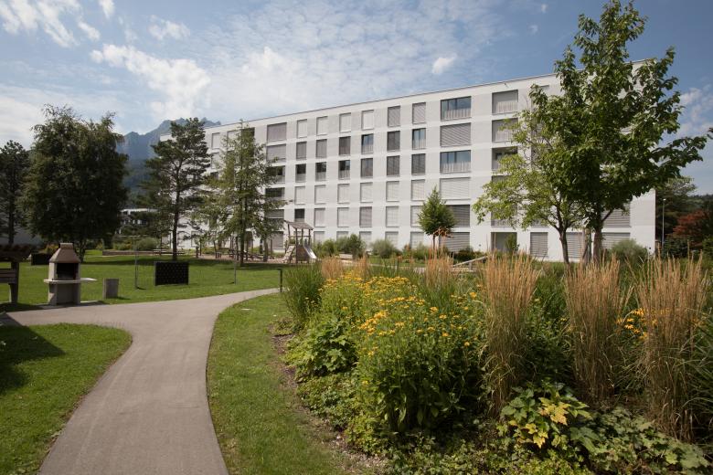 Die Qualität der Umgebung von Gebäuden spielt eine wichtige Rolle für das Wohlbefinden der Anwohnerschaft: Dies war der Grundgedanke bei der Entwicklung und Gestaltung des Hofparks «Schön Do» in Horw, der an die Wohnungen zweier Grundeigentümer anschliesst. Der sich über 3000 Quadratmeter erstreckende Park ist strukturiert durch bestehende und neu gepflanzte Bäume, die das Wechselspiel von Licht und Schatten verstärken und lauschige Sitzplätze überdachen.