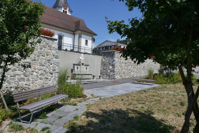 Da der südlichste Teil des Friedhofs nicht mehr für Bestattungen benötigt wird, kann die Idee eines Bundesrat-Zemp-Platzes mit Brunnen realisiert werden. Durch das Zurücksetzen der Friedhofmauer erhalten die Kirche und der Bundesrat-Zemp-Brunnen einen vorgelagerten Freiraum. Der neu geschaffene Platz wird als kleine Parkanlage mit Schirmbäumen, Grünflächen und Sitzmöglichkeiten gestaltet. Die neue grosszügige Platzsituation erhöht die Verkehrssicherheit für Kinder auf dem Schulweg: Durch den Rückbau der Friedhofmauer fällt der enge Trottoirbereich zwischen Strasse und Mauer weg. Auch die Fussgängerquerung zwischen Bundesrat-Zemp-Strasse und Schulareal Pfrundmatt wird viel übersichtlicher.