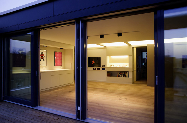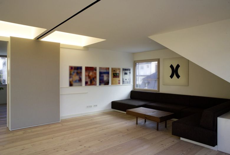 Im Rahmen des vorgegebenen Dachraums, der durch einen großen, flachen Gaupenkörper bestimmt war, wurde Raum für hochkonzentrierte Arbeit und konstruktive Besprechungen geschaffen. Als zentrales Instrument wurde er auf die Bedürfnisse und Erfordernisse eines Kommunikationsberaters zugeschnitten. Er korrespondiert mit den verschiedenen Arbeitsphasen ihres Nutzers.