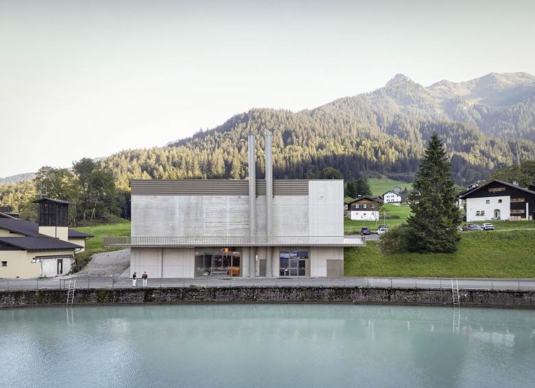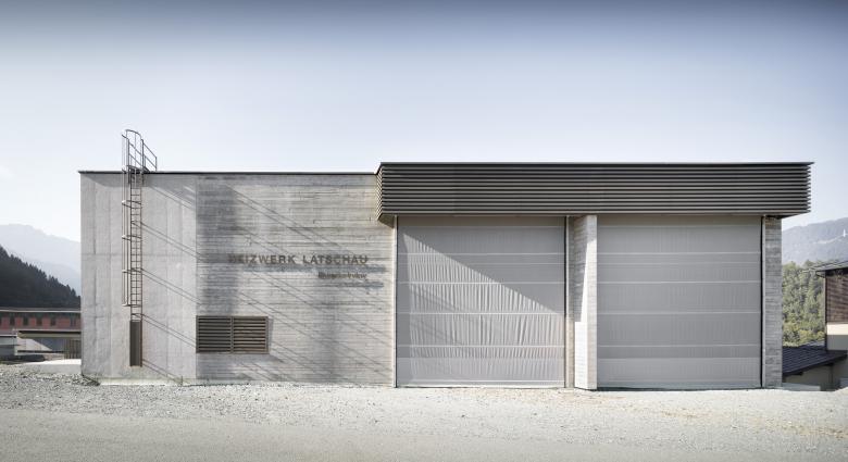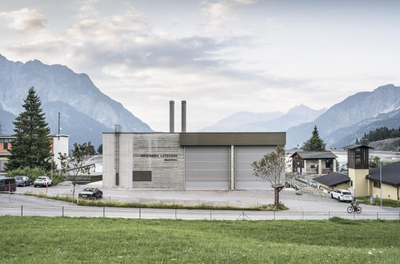 Bauen in den Alpen, innerhalb der mächtigen Kulisse der Montafoner Bergwelt, bedeutete im Fall des Heizwerks Latschau, die Material- und Farbwahl so auszurichten, dass sich das Gebäude in die umgebende Landschaft fügt. Die elegante Monotonie der Berge spiegelt sich in der Ausformulierung des Heizwerkes wider. Ein massiver und durch unterschiedliche Oberflächenstrukturen gegliederter Betonkörper und eine einzige Schmuckfarbe für sämtliche Metalloberflächen greifen die umliegende Atmosphäre auf und tragen sie weiter. Ein engagiertes Ökologiekonzept verschränkt das Gebäude weiter mit dem Umfeld, indem das Gebäude selbst zum Habitat für standorttypische botanische Raritäten wird.