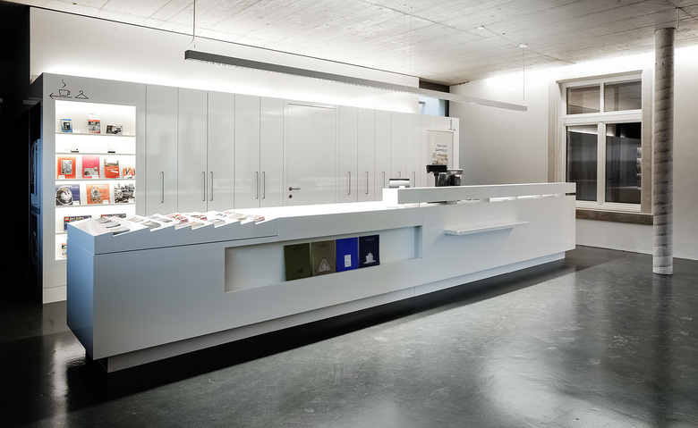 Ein Baustein in der Installation der Vorarlberger Museumswelt in der Energiefabrik in Frastanz (ehemaliges Hauptgebäude des Ganahl-Areals) bildet die Einrichtung des Foyers im 1. Stock des Zubaus von Architekt Joachim Schmidle. 70 m² heißen den Besucher willkommen und leiten in die nachfolgenden Ausstellungen über.