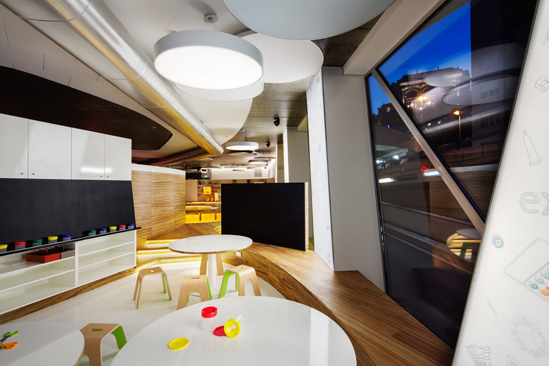Den Kindern im Club, im Alter von 0-8 Jahren, stehen an 7 Tagen die Woche verschiedenste Spiel- und Kursaktivitäten offen. Unterrichtsbereiche für Kunst und Werken, Musik und Tanz, zum Kochen und Experimentieren gliedern sich zwischen vielseitigen Raumteilern in einen großzügigen Gesamtraum.