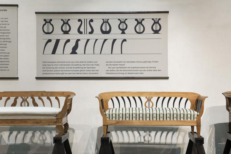 In einigen Bregenzerwälder Stuben stehen heute noch Kanapees aus der Biedermeierzeit. Material, Konstruktionsweise und Formensprache sind typisch für das bürgerliche Möbeldesign des frühen 19. Jahrhunderts. Ihre Formenvielfalt bei gleichem Konstruktionsprinzip zeigte die Ausstellung anhand von restaurierten Originalsofas aus der Werkstatt von Johannes Mohr. Doch wie kamen damals die exquisiten Möbel aus dem städtischen Umfeld in das abgelegene Tal? Diese Frage ist noch nicht abschließend geklärt…