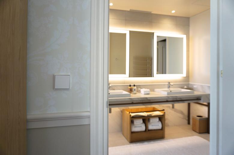 Für die Hotelzimmer wurde die Schalterserie LS 990 in Schneeweiß matt gewählt, die sich natürlich in die Farben des Raumes einfügt und durch ihre dezente Präsenz das gesamte Interieur aufwertet. Im Gegensatz dazu unterstreicht die Farbgebung der Serie LS 990 in Graphitschwarz matt die elegante Atmosphäre der Bar und des Restaurants und harmoniert mit dem sorgfältig gestalteten Interieur. Das Hôtel de L'Alpage ist mehr als nur ein luxuriöses Hideaway - es ist eine Hommage an die französische „Joie de Vivre“ oder Gastfreundschaft auf japanisch: Omotenashi.