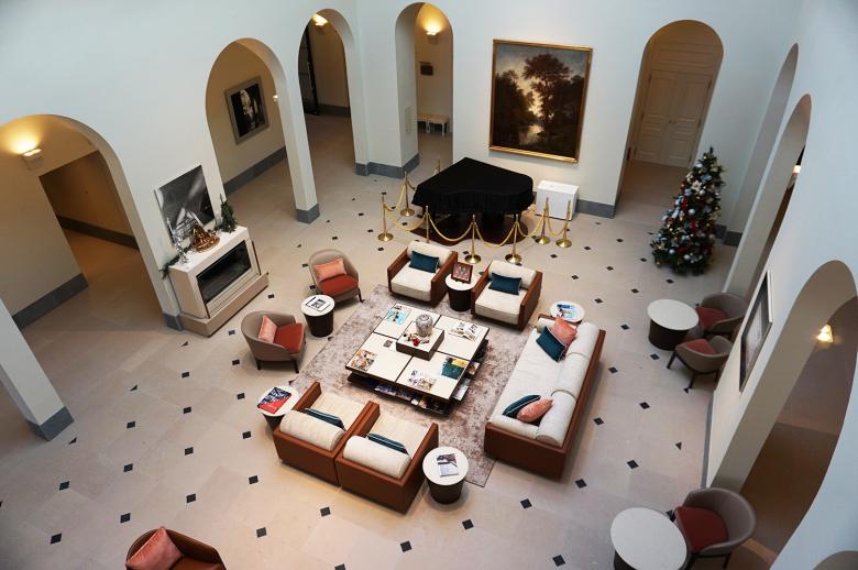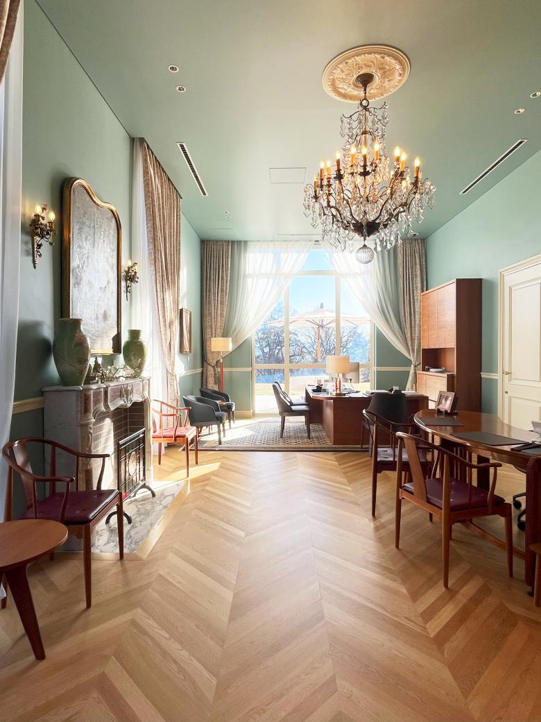 Der Begriff „L'Alpage“ ist den französischen Alpen entlehnt und bezeichnet die grünen Hochebenen, die im Sommer von Leben erfüllt sind. Inspiriert von diesem Gedanken wurde das Hotel mit dem Anspruch geschaffen, ein authentisch französisches Erlebnis zu bieten - nicht nur in den feinen Details, sondern in der gesamten Architektur- und Designphilosophie ebenso wie in der Gastronomie, der Bar und dem erlesenen Weinkeller mit edlen Tropfen. Das Hotel mit nur 12 luxuriösen Gästezimmern weicht bewusst vom konventionellen japanischen Baustil ab und ist in seiner Massivität ein Zeugnis französischer Baukunst. Die Kombination aus massiven Steinwänden, hohen Decken und großen Fensterfronten verleiht den Räumen eine großzügige, lichtdurchflutete Atmosphäre. Der Blick in die umliegende Natur wird durch geschwungene Balkone und elegante Terrassen, die an klassische französische Villen erinnern, verstärkt. Jedes architektonische Detail spiegelt die Ästhetik des 18. und 19. Jahrhunderts wider - von funkelnden antiken Kronleuchtern bis hin zu farblich perfekt abgestimmten Farrow & Ball Tapeten. Ein besonderes Highlight ist die hauseigene Bibliothek mit seltenen Büchern aus der Privatsammlung des Hotelbesitzers. Der Schwerpunkt liegt auf Kunst, Design und Architektur - eine Oase der Inspiration für Kenner und Ästheten. Die kunstvollen Details der Inneneinrichtung, von handgefertigten Holzvertäfelungen bis hin zu original französischen Kaminen, unterstreichen das Konzept eines stilvollen, historischen Rückzugsortes.