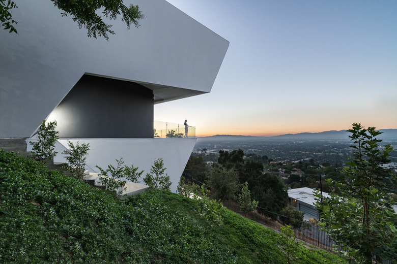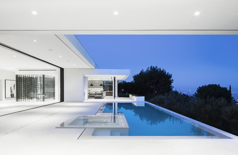 The Mirrorhouse is perched on the hillside of Beverly Hills with downtown views to the east and views to Palos Verdes and the Pacific Ocean to the west. The floor plan is developed around five offset volumes, enclosing the private spaces of the house.
