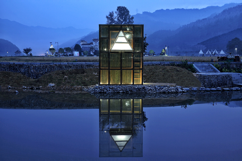 The Shelter · Mirrored Sight is part of the Shelter Series architectural installation practice. It is set by the north bank of Longxi River outside the old town of Longli in Jinping county, Kaili Area, Southeast Guizhou.