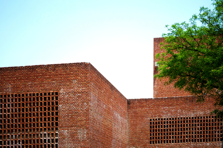 Surrounded by a rapidly urbanizing village settlement, the seven-acre site is on the outskirts of New Delhi. The site’s existing rocky terrain posed a significant challenge to the spatial planning of the site.