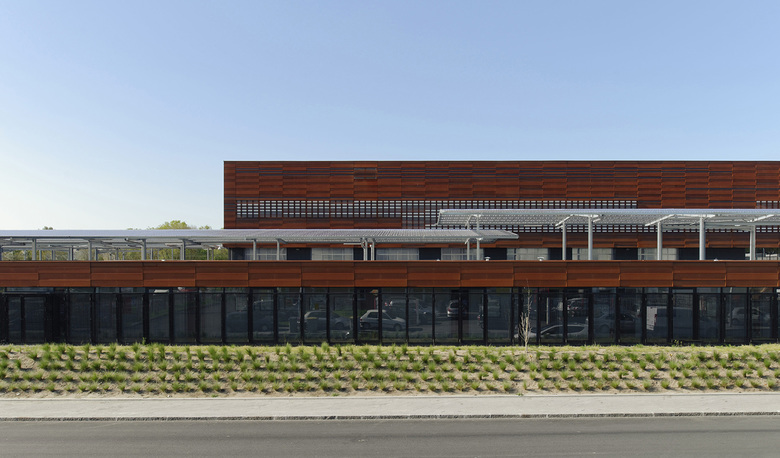 An old household rubbish tip in the middle of an industrial zone swept by dynamic east-west flows (trains, cars, barges, river, wind) defines the vibrant setting of the technical centre for the Public Waste Collection Service and its Support Department.