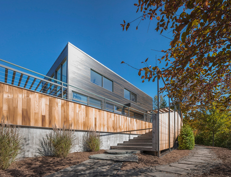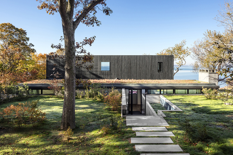 This home is partially sunken into a bluff where a wooded site meets the ocean. The living spaces within span the overlap between the forest and water’s edge – form and detail exploring the tension between the natural and the man-made.